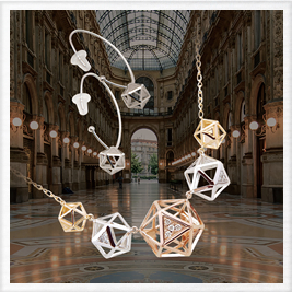 20面体から生まれた360度どこから見てもコロコロと可愛いフォルム。ジュエリーでは表現の難しい立体感とボリューム感を兼ね備えたジュエリーコレクション
